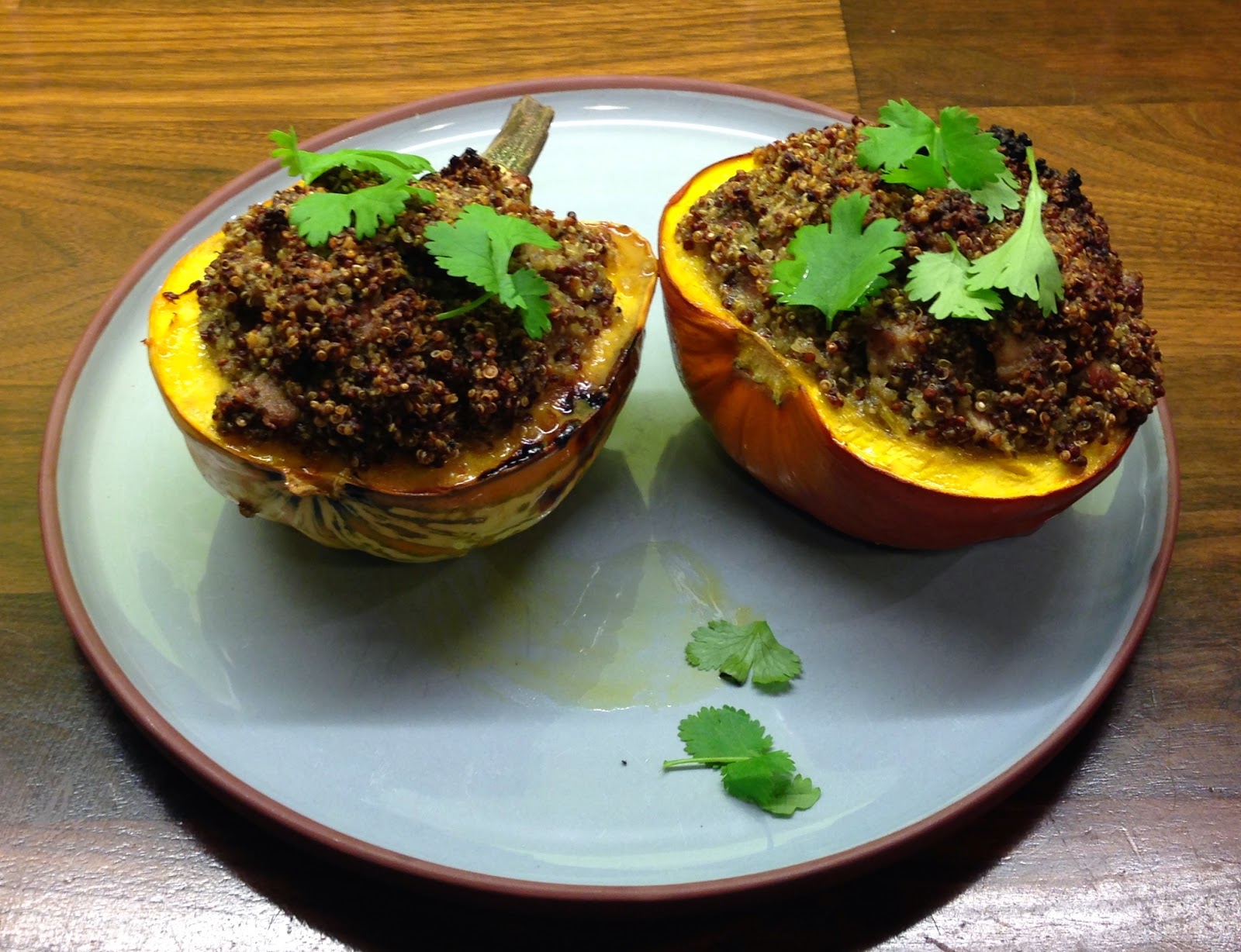 Half and de-seed the pumpkins, leaving the skin on. Stuff with the pesto mixture. These can be prepared in advance and stored in the fridge until ready to bake.