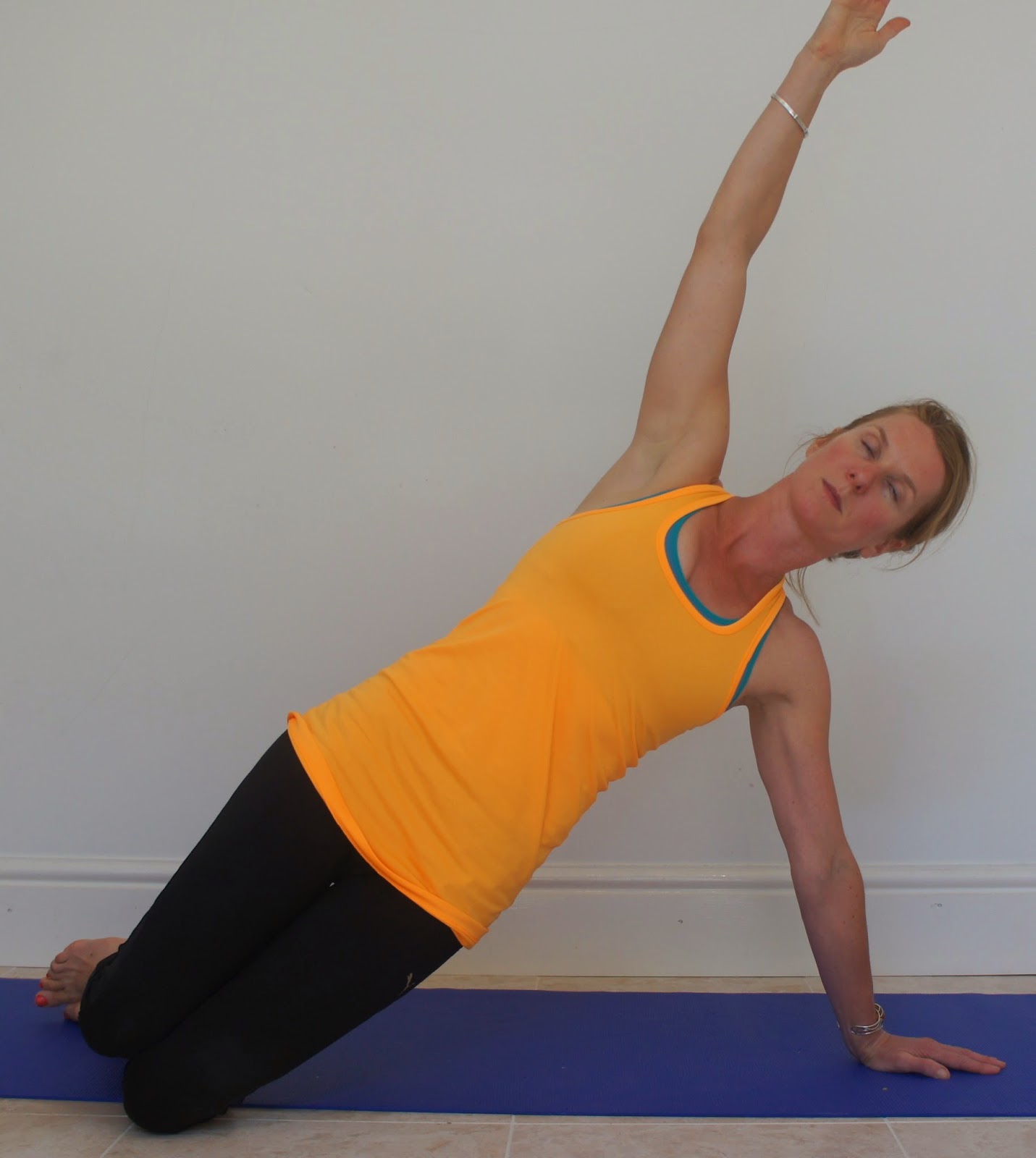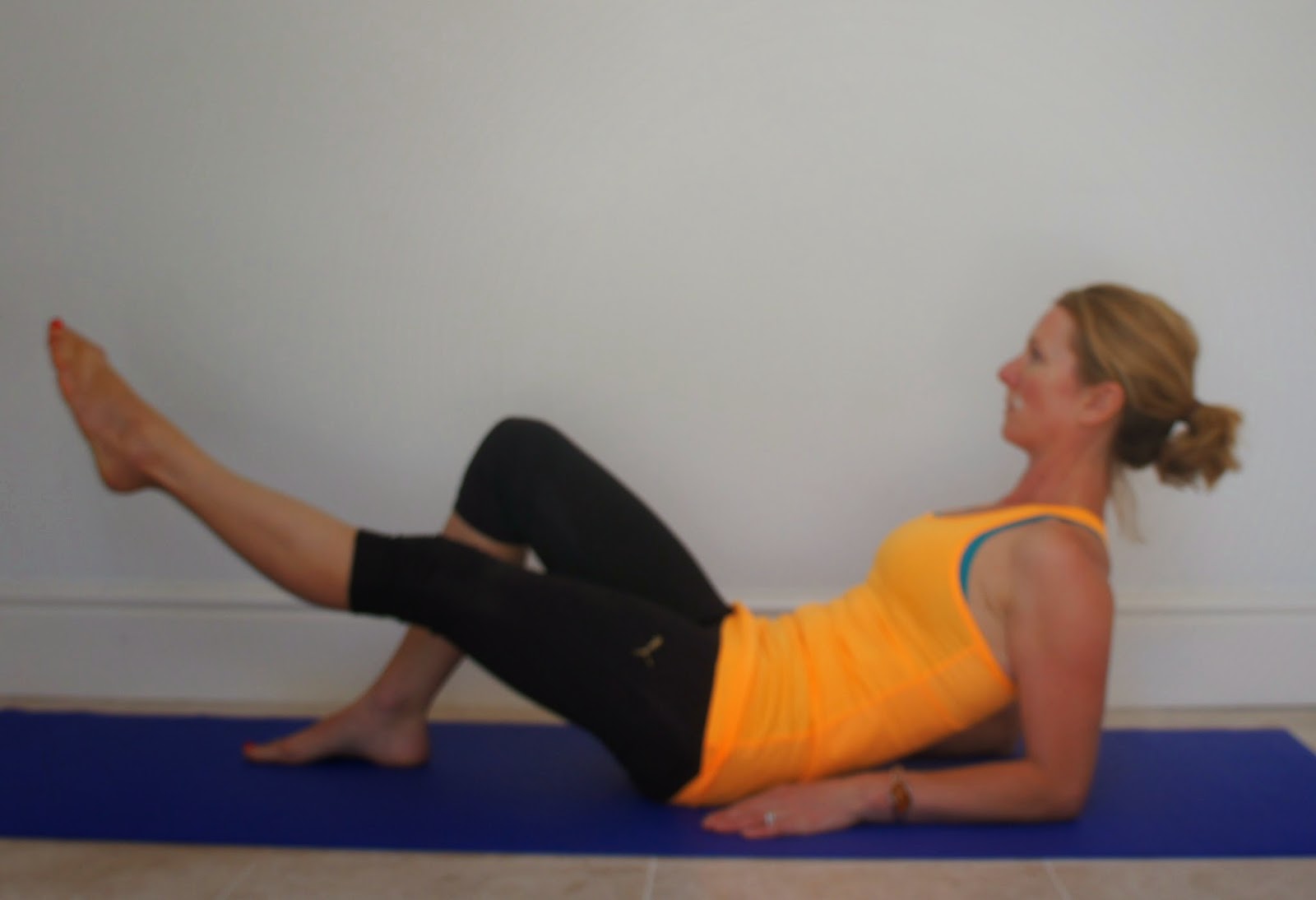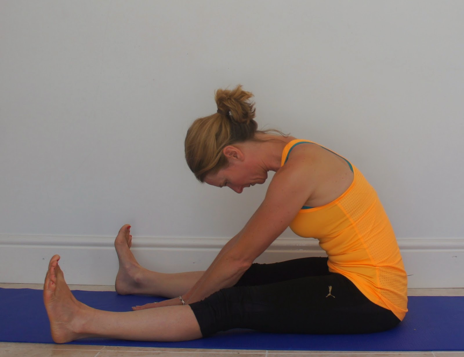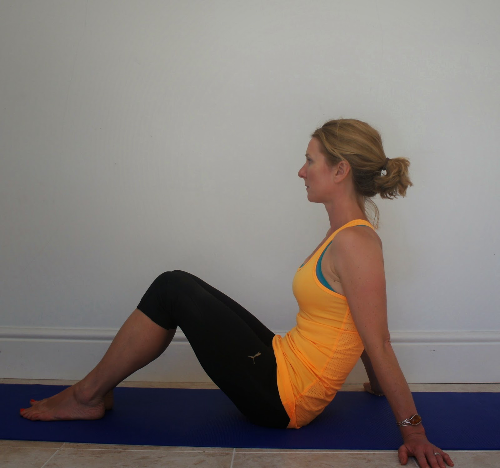Bend and stretch – Semi recumbent or side lying position. Sit just off the back of the sitting bones with the spine slightly flexed. Focus on maintaining pelvic stability throughout.