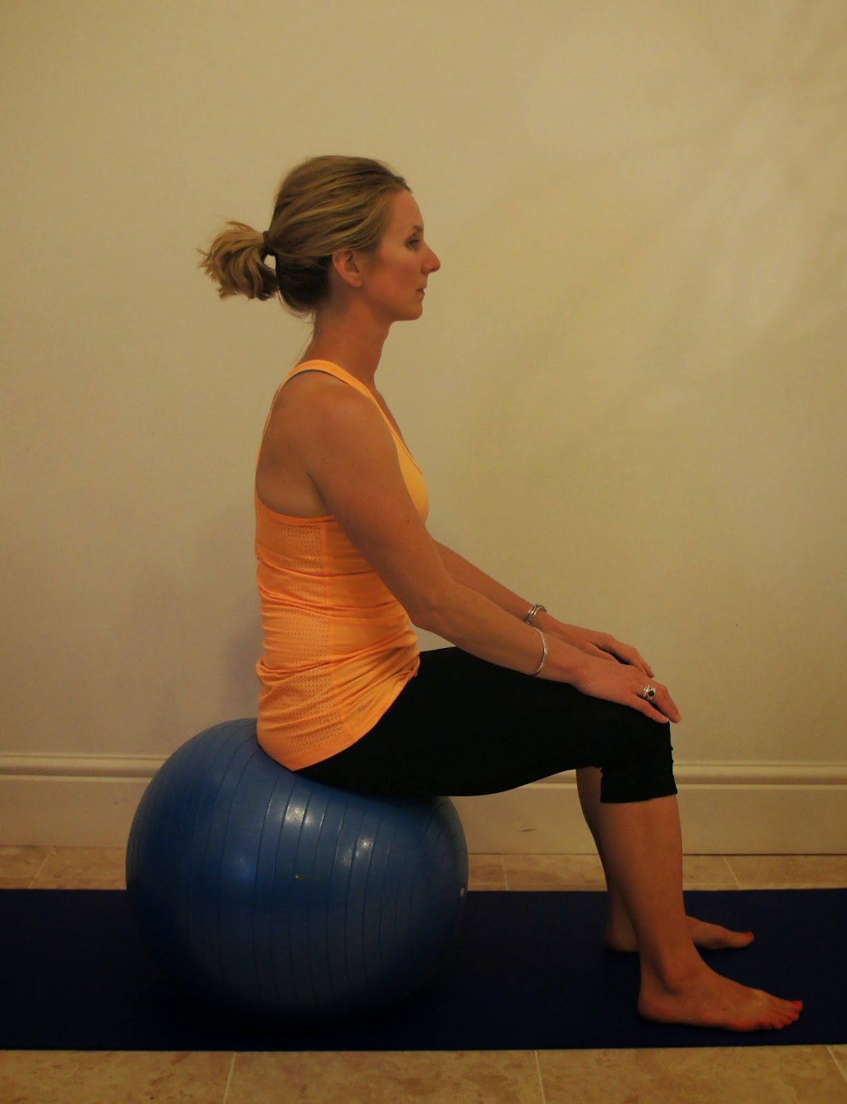 This can be performed lying (during the early stages of pregnancy). Seated on the floor (resting on the elbows in a semi recumbent position) or a stability ball, or standing